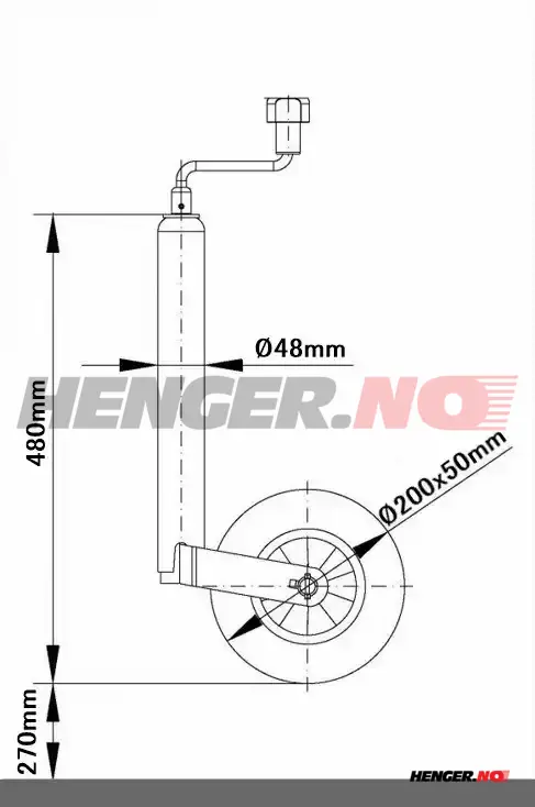 Støttehjul Ø48mm 150Kg 200X50mm hjul gummi/plast